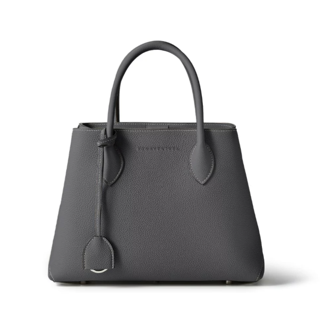 コンパクトすぎず、必要な荷物をしっかり収めやすいサイズ感も魅力です。上質なシュリンクレザーならではのやわらかな表情があり、かっちり見えすぎないのもうれしいポイント。ハンドバッグとしてはもちろん、ショルダースタイルでも使いやすく、見た目の美しさと実用性を両立したモデルです。