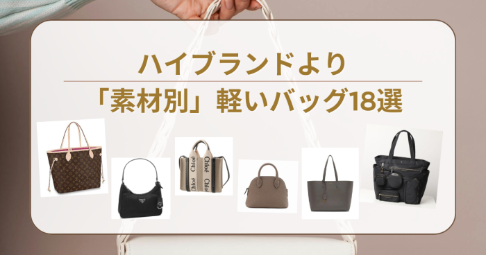 重いバッグが多い傾向にあるハイブランドですが、今回は「使いやすさ」を求めて軽量感のあるブランドバッグをピックアップしました。軽いバッグの代表的なナイロンはもちろん、キャンバスやレザーなど、素材ごとの特徴についてもまとめています。